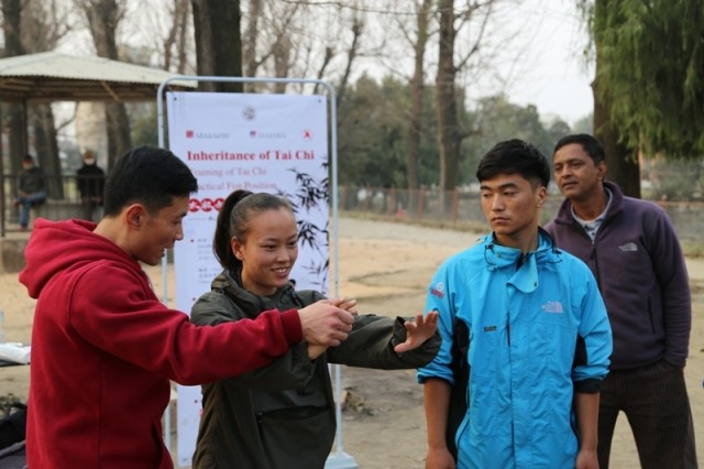 काठमाडौं । चीनियाँ शारीरिक अभ्यास खेल “ताई ची”को आधारभुत प्रशिक्षण काठमाडौंमा सुरु भएको छ । चिनियाँ साँस्कृतिक केन्द्रको आयोजनामा बुधबारबाट शुरु भएको “ताई ची” को प्रशिक्षण आइतवार सम्पन्न हुनेछ । हरेक दिन बिहान १० बजे देखि ११ बजे सम्म चिनियाँ साँस्कृतिक केन्द्रको कार्यलय महाराजगञ्जमा र दिउँसो ३ बजे देखि ४ बजे सम्म शंख पार्कमा प्रशिक्षण संञ्चालन भईरहेको छ ।