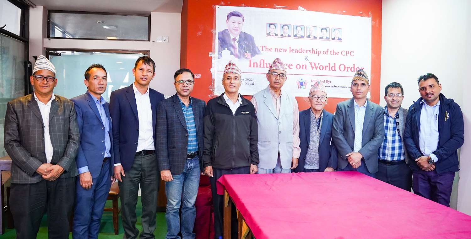 काठमाडौं । फ्रेन्डसिप फोरम फर नेप्लिज जर्नालिस्टले चिनियाँ कम्युनिष्ट पार्टीको नयाँ नेतृत्व र विश्वव्यापी रुपमा यसले पार्ने प्रभाव विषयक अन्तरक्रिया कार्यक्रम सम्पन्न गरेको छ ।