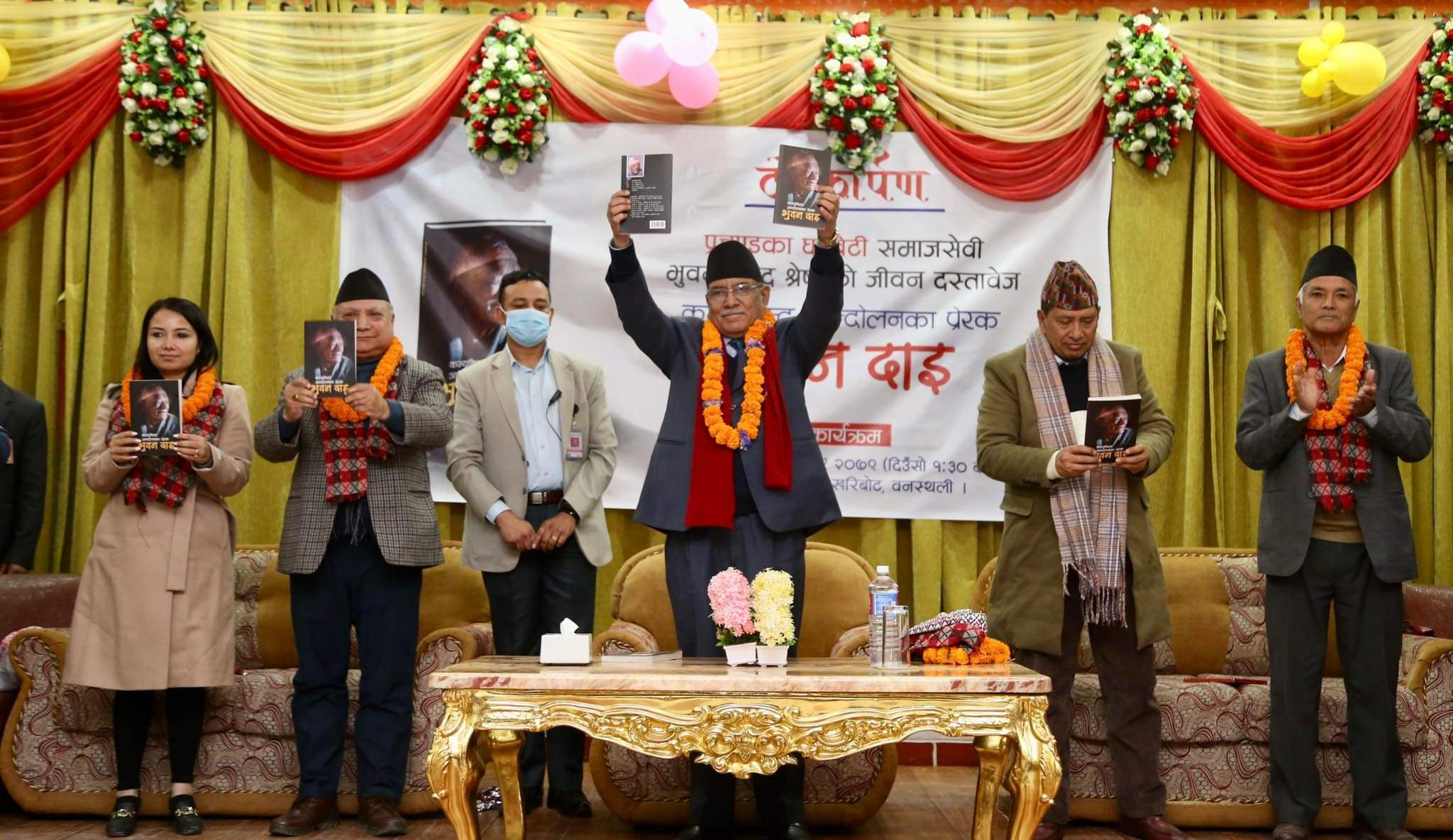 कम्युनिस्ट आन्दोलनका पुराना नेता, नेकपा (माओवादी केन्द्र) को ज्येष्ठ नागरिक सल्लाहकार मञ्चका केन्द्रीय सदस्य भुवनप्रसाद श्रेष्ठद्वारा लिखित ‘कम्युनिस्ट आन्दोलनका प्रेरक भुवन दाइ’ पुस्तकको लोकार्पण गर्दै प्रधानमन्त्रीले भने, ‘‘सिङ्गो सदन नै विश्वासको मत दिने अवस्थामा आयो । यो नेपाली राजनीतिमा असाधारण परिघटना भयो । करिब राष्ट्रिय सहमति नै भयो । यो मेरा लागि गौरवको विषय हो, चुनौती पनि हो । मैले त्यही ठानेको छु । सिङ्गो देशलाई एकताबद्ध भएर जाने वातावरण बनेको छ, देश एकताबद्ध भएर जान्छ ।’’
