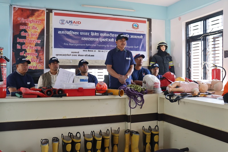 भीमेश्वर नगरपालिकाको फायर ब्रिगेडले जनतालाई सुरक्षाको अनुभूति दिलाएको नगर प्रमुख ईश्वर मानन्धरले बताउनुभएको छ । नगरका फायर ब्रिगेडमा कार्यरत कर्मचारीका लागि पालिकाले आयोजना गरेको ५ दिने आगलागी ब्यवस्थापन पुनर्ताजगी तालिमको आज उद्घाटन गर्दै मेयर मानन्धरले फायर टिमको प्रशंसा गर्नुभएको हो ।