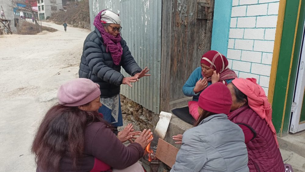उनले भने, ‘खुम्बुमा यतिखेर खाने तेलदेखि घरभित्र भरेको पानीसमेत जमेर ढिक्काजस्तै बन्छ, मज्जाले घाम लागेको बेला त त्यो पग्लिन्छ, यसरी घाम नलाग्दा त घरभित्रको पानी दिनभर नै पग्लिदैन, यहाँको अवस्था त तपाईँहरूले सोचेभन्दा फरक छ नि, कत्ति गाह्रो छ, त्यही भएर धेरैजसोले खुम्बु छाडे, हामी थोरैमात्रै गाउँमा छौँ ।’